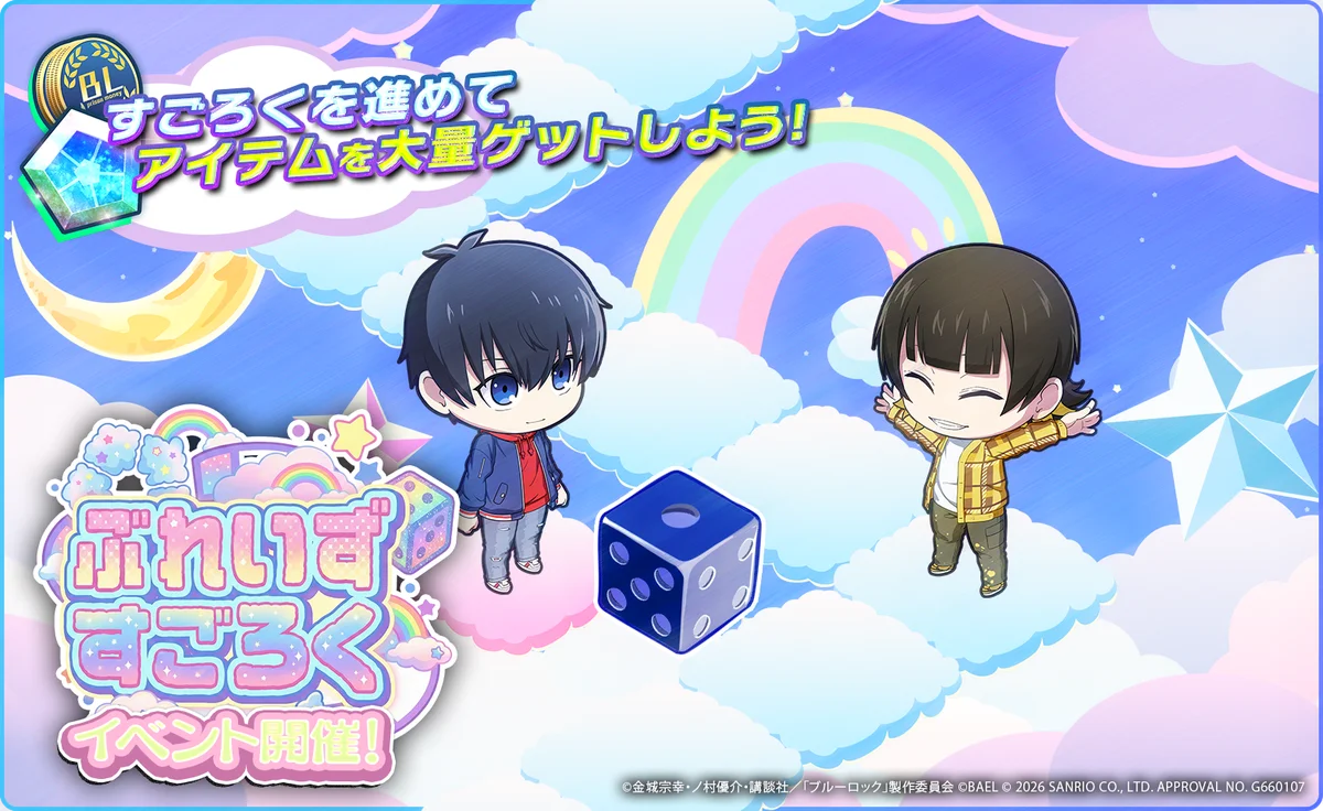 株式会社BAEL(本社:東京都新宿区、代表取締役:田村友一)は、TVアニメ『ブルーロック』を原作とするスマートフォン向け3Dサッカーバトルゲーム『ブルーロック BLAZE BATTLE』(以下、ブレバト)において、「サンリオキャラクターズ」コラボイベントを2026年1月9日(金)18:00(※メンテナンス状況により前後あり)より開催すると発表しました。