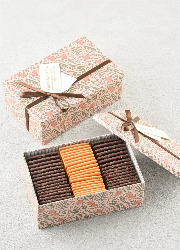 パッケージはピンクのニュアンスカラーに小花柄の缶を採用し、チョコレート色のリボンと“Especially for you”のペーパータグが付属します。自分へのご褒美としても、贈答用としても使える仕様です。
