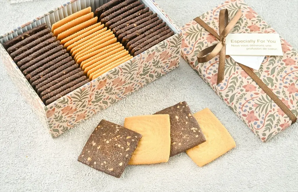 同商品は、Buttery自慢のオーブンで焼き上げたサクサク食感の「バタリークッキー(プレーン)」と、ローストアーモンドの香ばしさが特徴の「アマンドショコラクッキー」を一つの缶で食べ比べできる構成になっています。缶のデザインやパッケージにも気配りがあり、贈り物としての体裁も整えられています。
