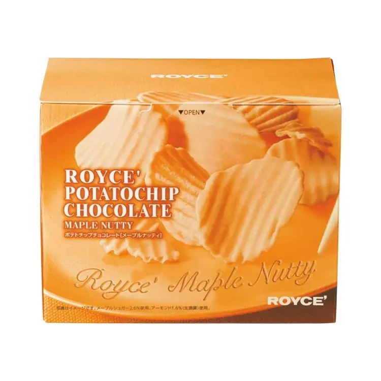 | ポテトチップチョコレート[メープルナッティ] | 190g | 1,188円(本体1,100円) | 通信販売:ご注文期間~2026年2月11日 | お届け希望日~2026年2月15日 | 店頭販売開始:2025年11月4日より。片面コーティング、メープルシュガーとアーモンドプラリネ配合。 |