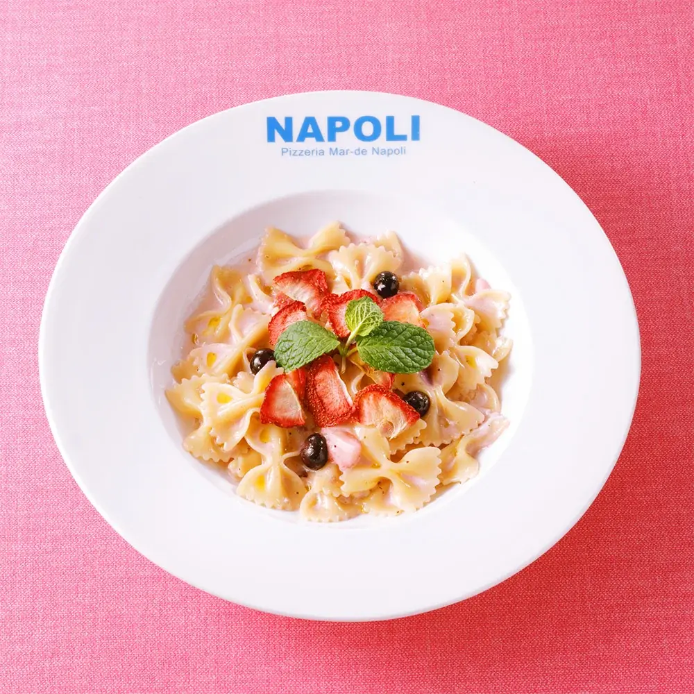 | ピッツェリア マルデナポリ | イーストヤード7階(ソラマチ限定) | いちごのファルファッレ | ¥1,848 | リボン形パスタにいちご&ブルーベリーを生クリームで和え、フレッシュとドライを使用。 |