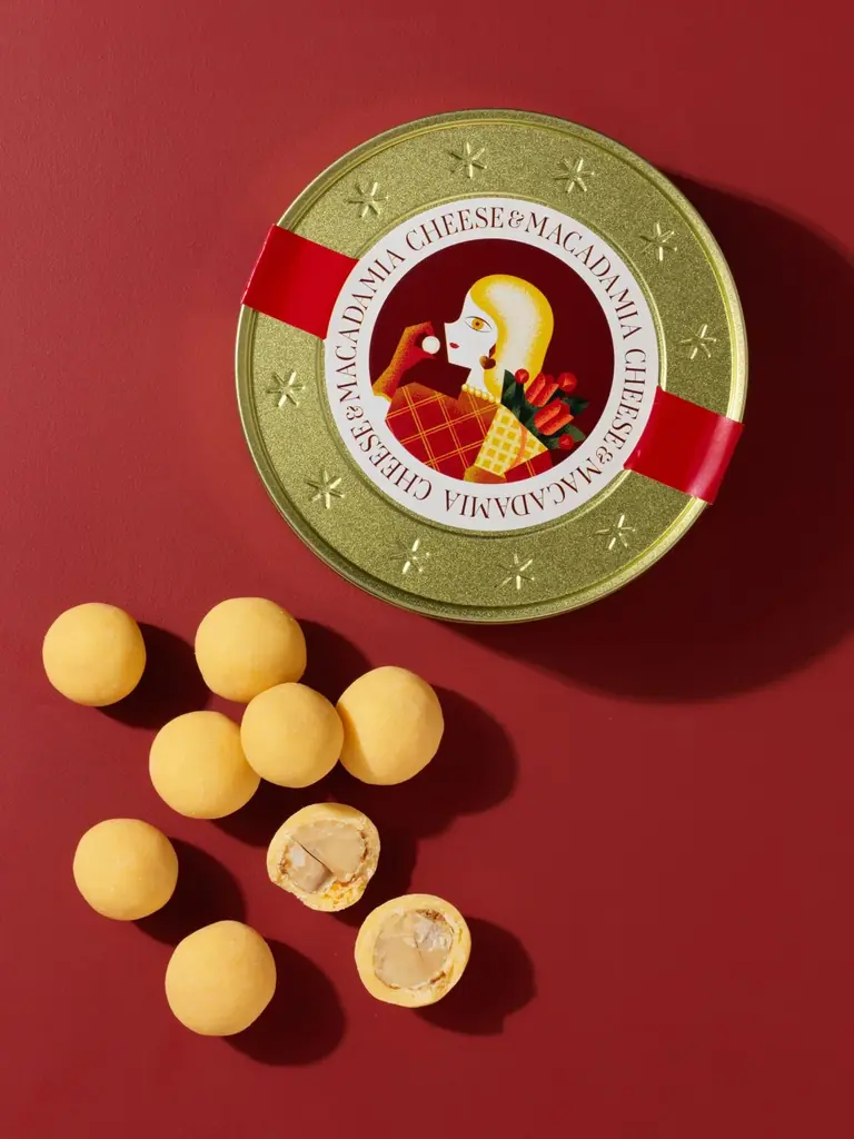 この商品も数量限定で、なくなり次第終了となります。チーズの塩味とメープルシュガーの甘みが特徴で、チェダーチーズチョコレートでキャンディングしたマカダミアを包み、メープルシュガーで仕上げています。