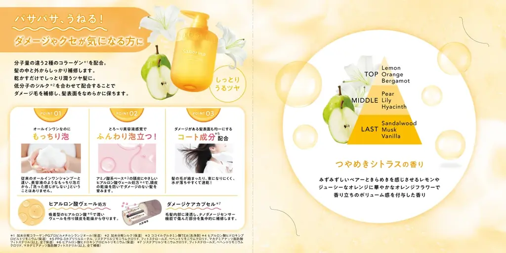 対象となる製品は「サボリーノ オールインワン美容液シャンプー」。髪の悩みに合わせて選べる2タイプを基本とし、今回のキャンペーンでは複数バリエーションが対象とされています。製品は手軽に使えるオールインワン型で、忙しい生活に寄り添うサボリーノのコンセプトに沿ったアイテムです。