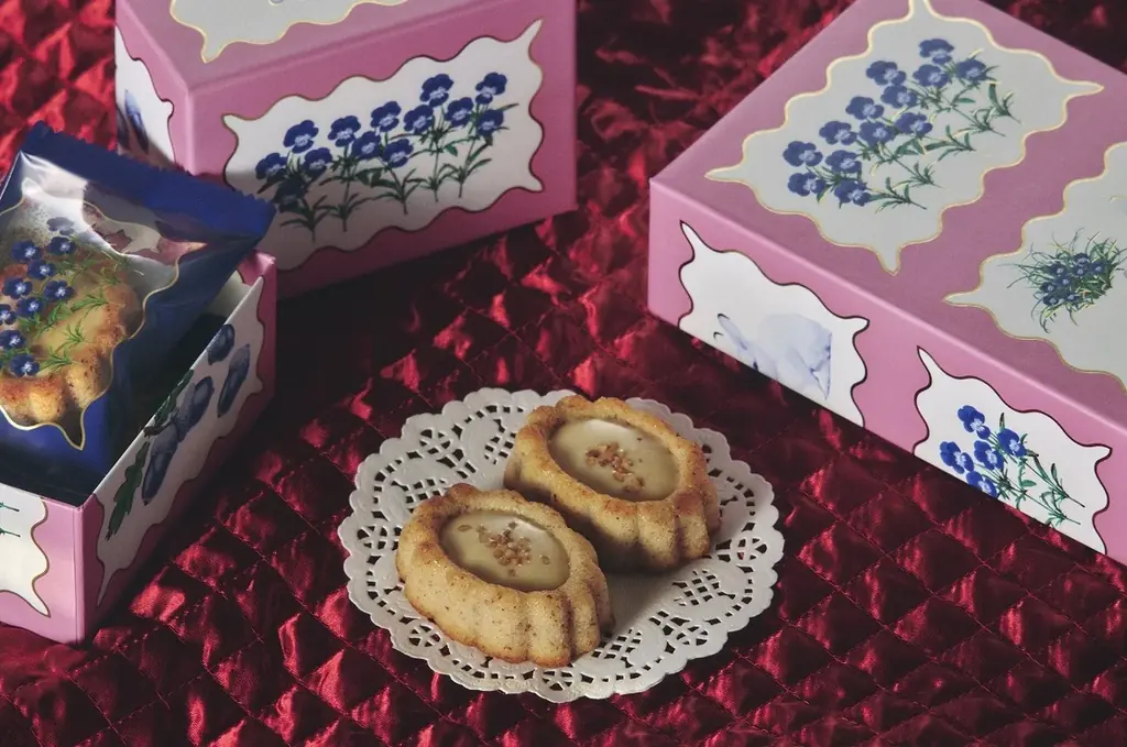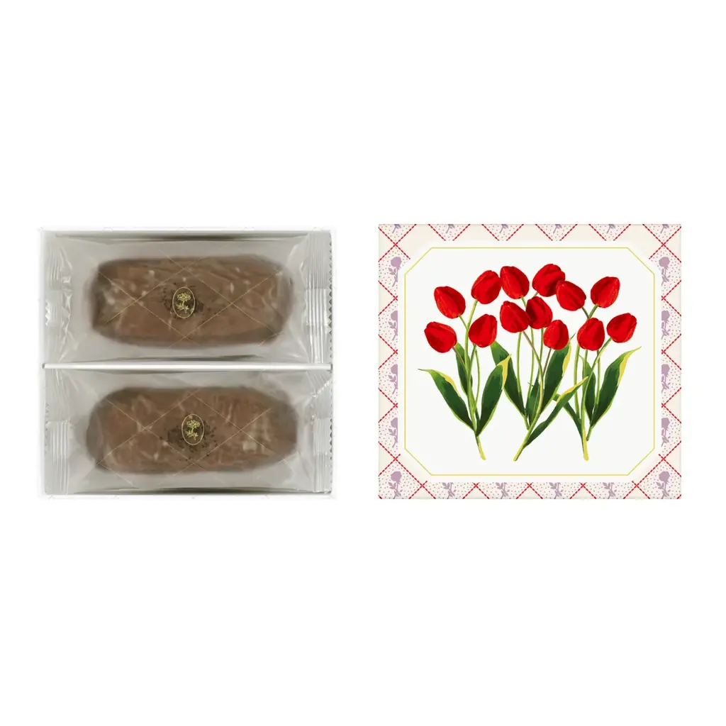 - お花のティグレ:国産バターで焼き上げたお花型の生地中央に滑らかなチョコレートを入れた焼き菓子。価格:6個入 2,592円、4個入 1,728円、2個入 864円。