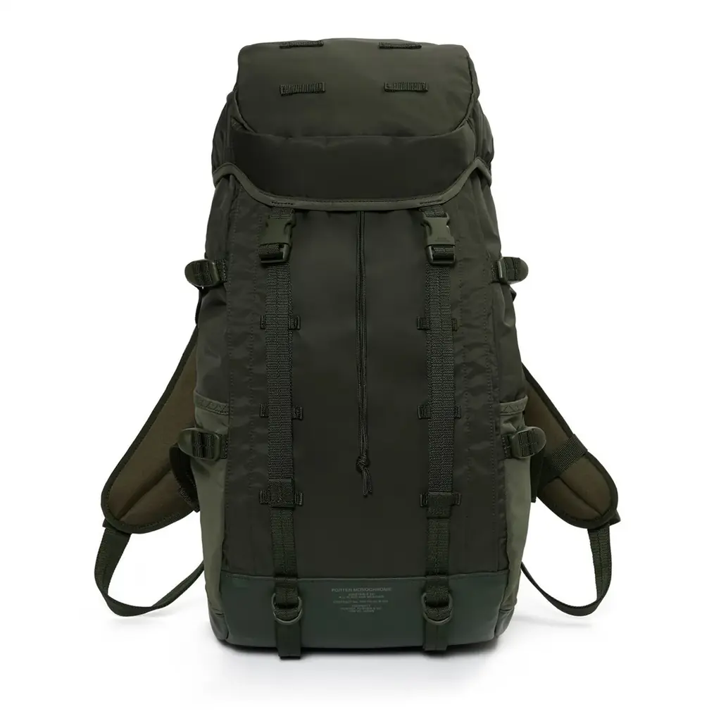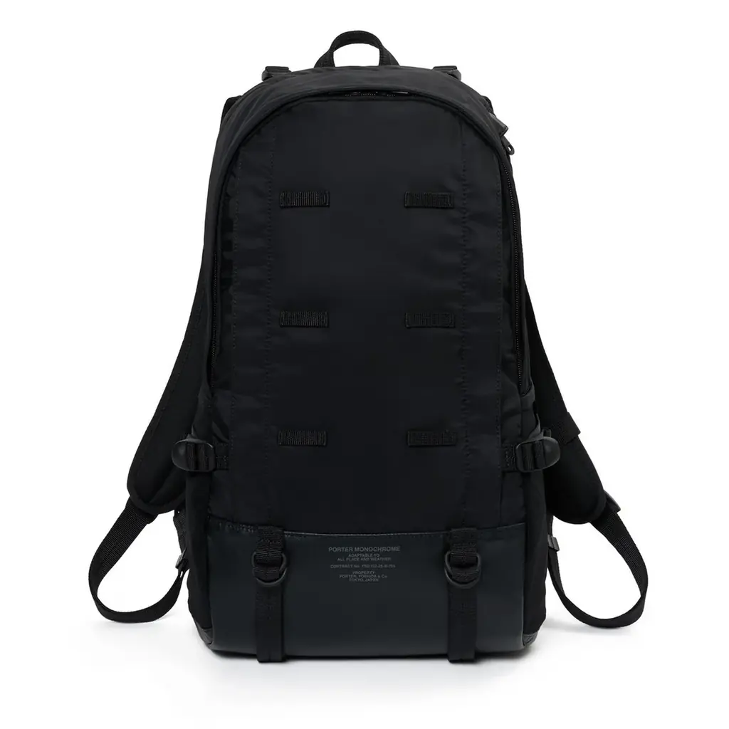 MONOCHROMEはミリタリーバッグのディテールに着想を得たモール(MOLLE)システムを取り入れつつ、都市生活に適合する細部の設計が施されています。用途に応じた拡張や小物の取り付けが可能で、実際の使用シーンを想定した機能的な構成です。