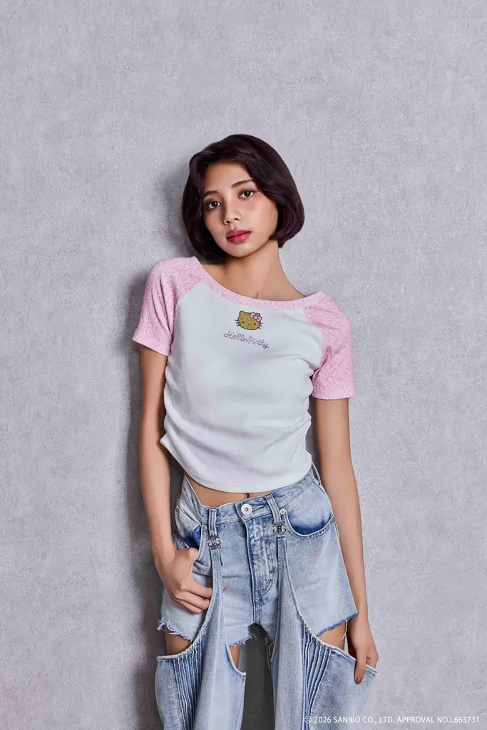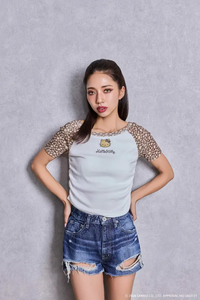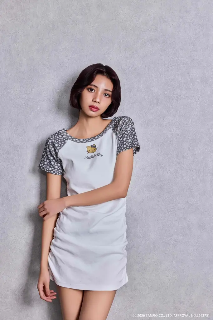 本コラボで展開されるのは、Tシャツとワンピースの2型です。いずれもハローキティをモチーフにしたグラフィックとオリジナルレオパード柄の袖など、GYDAらしいデザイン性が取り入れられています。ここではプレスリリースに記載された全情報を正確に列挙します。