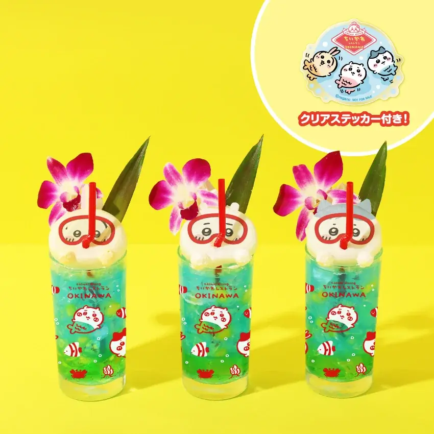 | シュノーケルクリームソーダ(クリアステッカー付き) | イートイン 各¥1,430(税込)/テイクアウト 各¥1,404(税込) | キャラクター(ちいかわ、ハチワレ、うさぎ)を選択可能 |