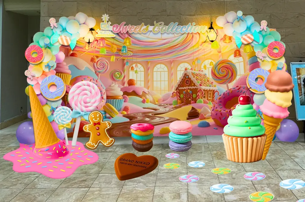 | 主な展示・体験 | 館内装飾・フォトスポット、お菓子の家、デジタルスタンプラリー(Sweets Hunt!)、パティシエ特製スイーツ(5種)、スイーツ付き宿泊プラン、親子スイーツ教室等 |