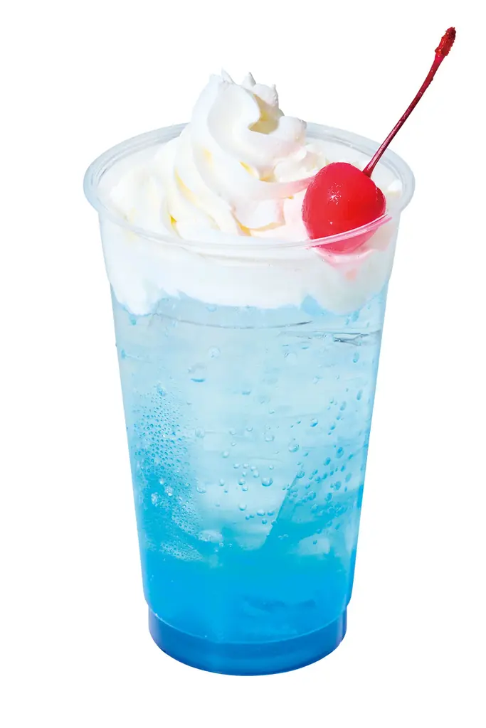 北斎ブルーと称される深く澄んだ藍色を、透明感のあるソーダ飲料で表現したドリンクです。展覧会の雰囲気や水の表現と親和性が高く、「水の都 OSAKA」にも合う色彩設計になっています。