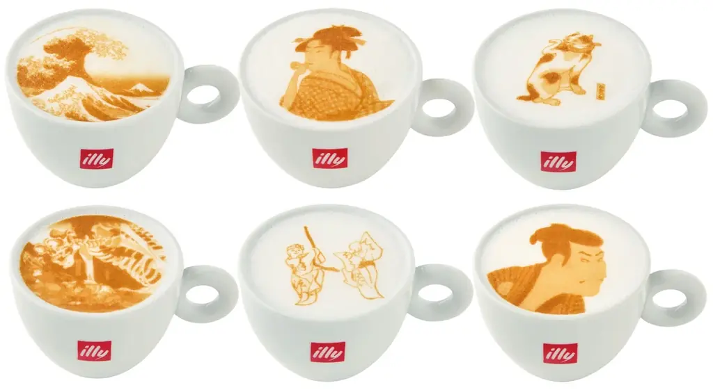 イタリア・イリー社の豆を使用した本格カフェラテの上に、浮世絵をモチーフにしたラテアートが6種類用意されています。選べるデザインは以下の6点です。