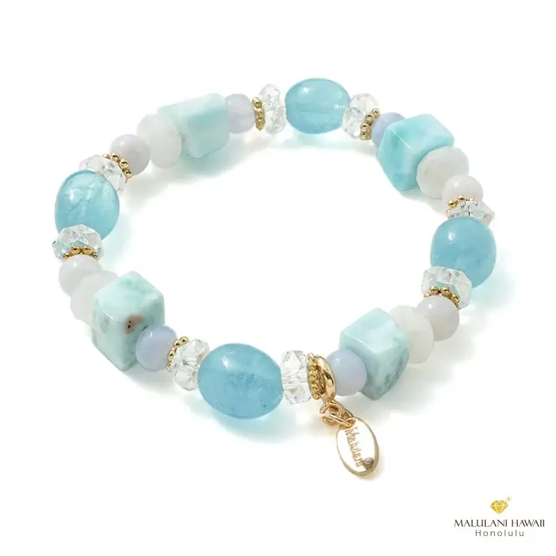 - ブルートーンの石を用いたブレスレットで、思考をすっきり整え、落ち着いた判断とインスピレーションを促すとされます。健康、厄除け、仕事、判断力、インスピレーション、繁栄、幸福のお守りとして紹介されています。