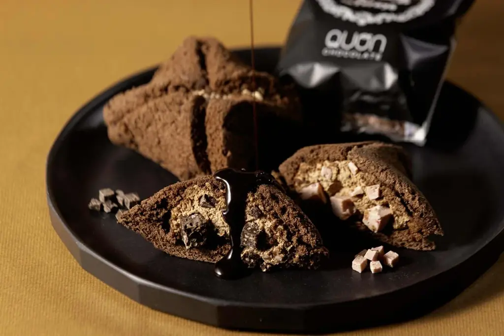 また、QUONの代表的な商品である「QUONテリーヌチョコレート」をキューブ状にカットしてチョコレートクリームの中に封じ込めることで、なめらかさ・濃厚さ・ザクザクとした食感が同時に現れる多層的な味わいが特徴です。チョコレート好きに向けた“ふんわり+濃厚+ザクザク食感”が設計のキーワードになっています。