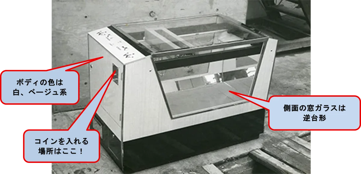 「クラウン602」は1965年(昭和40年)に発表され、筐体左右と天板がガラスで上から見下ろす形の箱型タイプでした。遊び方自体は現代のクレーンゲーム機と基本的に同じで、当時はキャラメルなどの嗜好品が景品として提供されていました。長年にわたり実機は記録から姿を消し、現在は限られた写真資料のみが残っています。