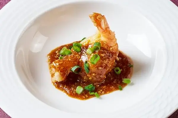 海老を使ったメニューは複数用意され、異なる調理法と味付けで楽しめます。イメージとして記載された料理名も含まれます。