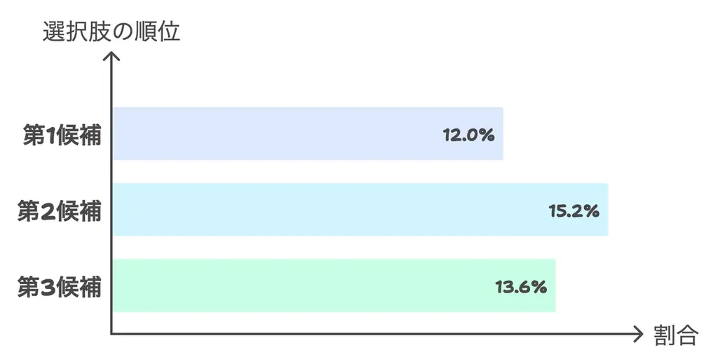 - 第1候補:12.0%/第2候補:15.2%/第3候補:13.6%(合計で約4割が第1~第3候補に挙げる)