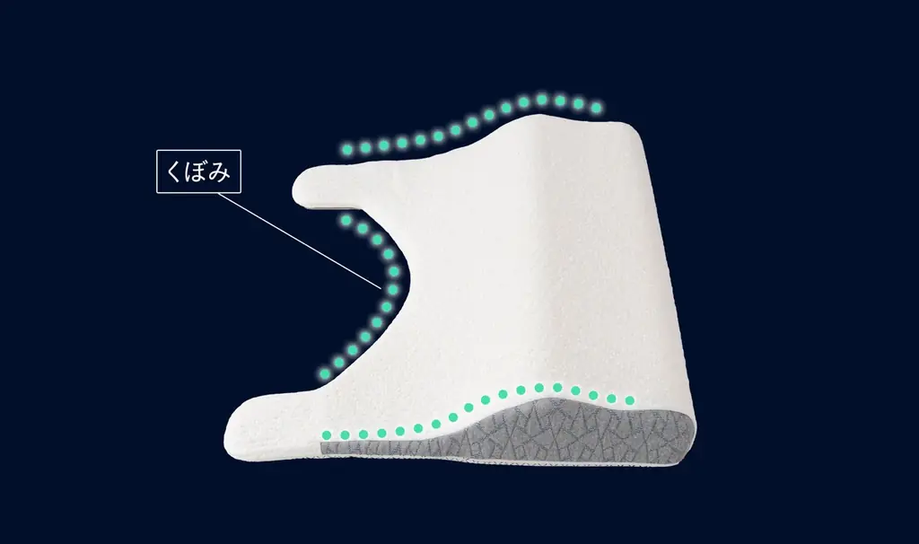 2つ目のネックカーブは、首や肩の筋肉にかかる緊張を緩和する角度を持つ設計です。自然なカーブが首のつっぱり感を軽減するよう工夫され、朝の不快な感覚を和らげる狙いがあります。両形状ともに人間工学の知見が反映されています。