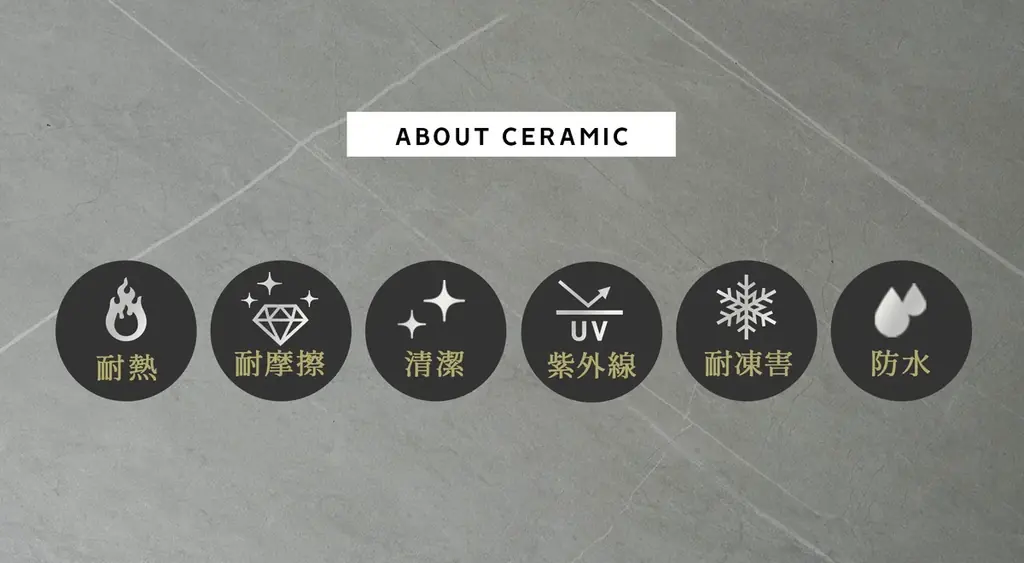 - 耐熱、耐摩擦、清潔(アルコール対応)、紫外線耐性、耐凍害、防水(吸水性が低い)