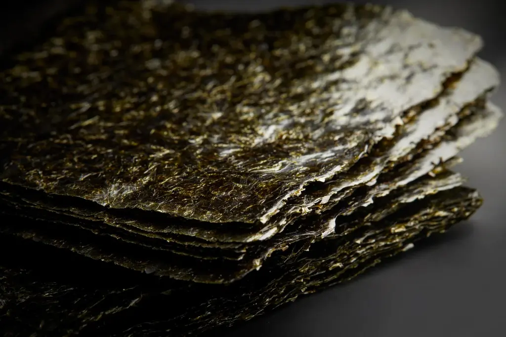 - 液体の醤油ではなく粉末醤油を用いることで海苔を湿らせず、パリパリ感を保ちながら醤油の風味を感じられるように設計しています。塩分は強すぎず、ネタやシャリの味を引き立てる配合です。なお、一部の商品では醤油ベースのスパイスを使用しています。