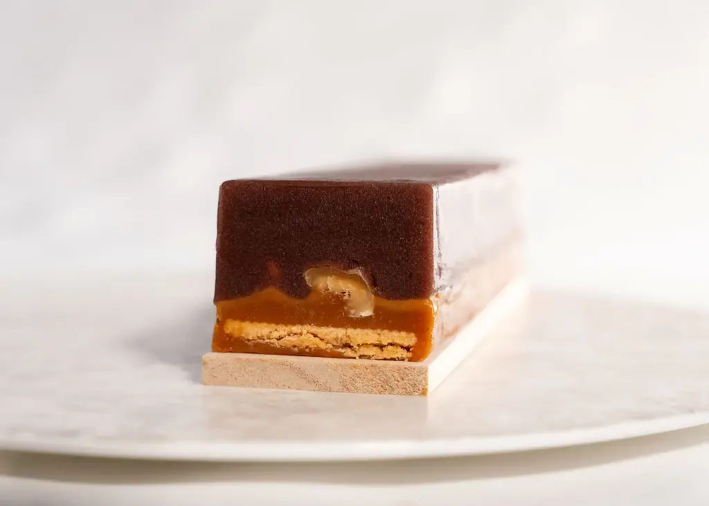 - 大納言:能登大納言を使用。3日間かけて作った自家製あんこのガナッシュを用いた層構造。