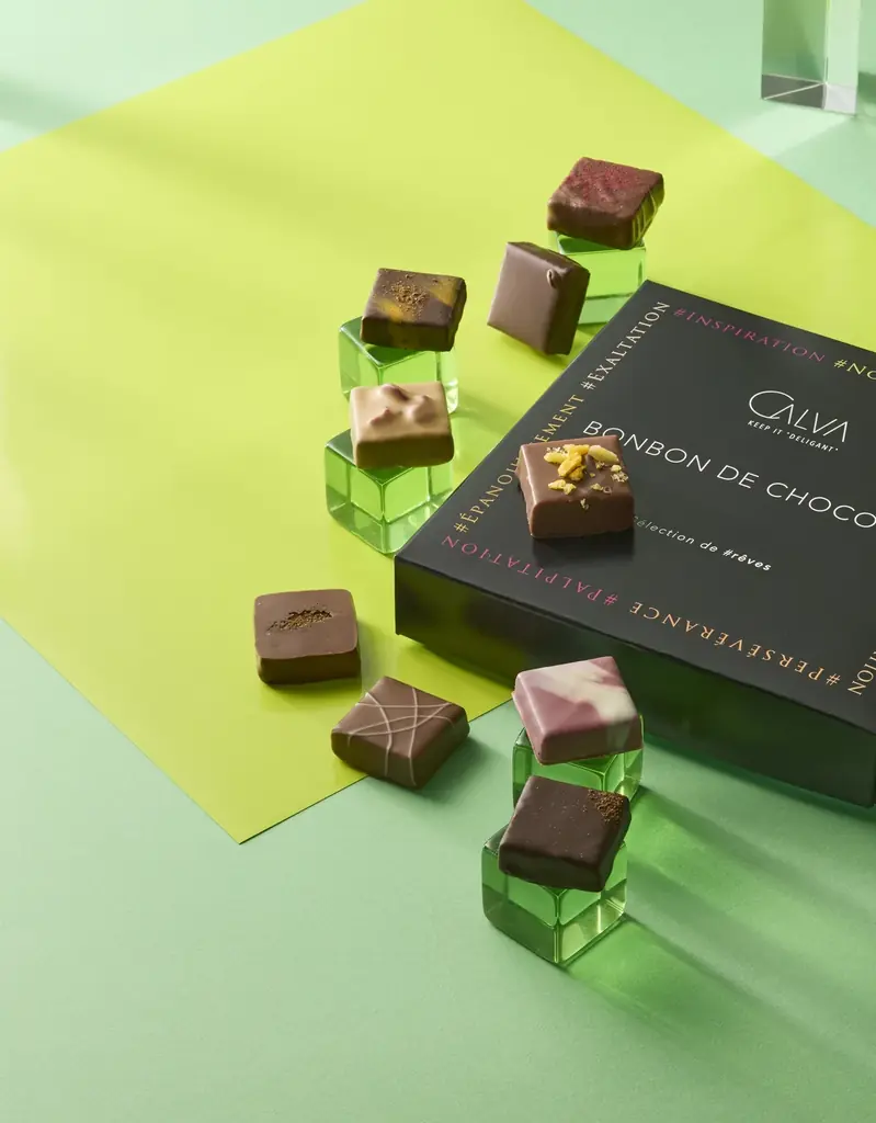 CALVAは2026年のテーマを「DREAM」とし、それを10粒のボンボンショコラで表現した限定BOXなど、複数の新作と定番の人気商品を用意しています。代表の田中二朗シェフの技術を活かした商品のラインナップは、風味、香り、食感の組み合わせを重視した構成です。