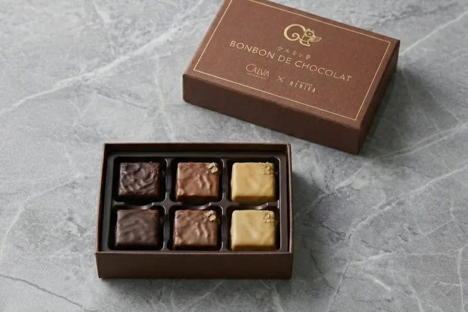 価格:3,240円(税込)香ばしいクルミ入りキャラメルショコラとサブレ生地の組み合わせで食感も楽しめるボンボンショコラ。CALVAのボンボンショコラでクルミッ子を表現した商品です。