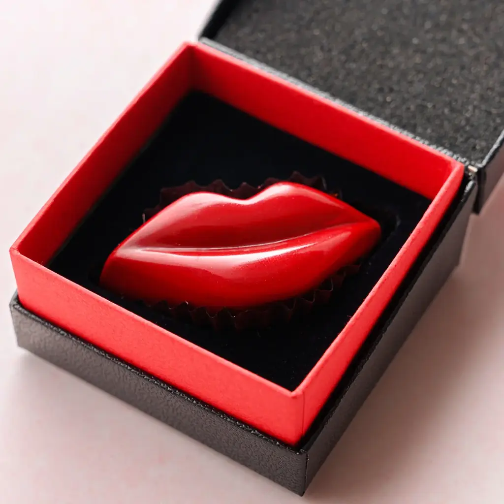 LOVEKISS(ラブキス)は毎年人気のリップ型ショコラで、今年もバレンタイン限定商品として登場します。価格は税込648円です。外観は鮮やかなルージュを模し、視覚的なインパクトを与える造形になっています。