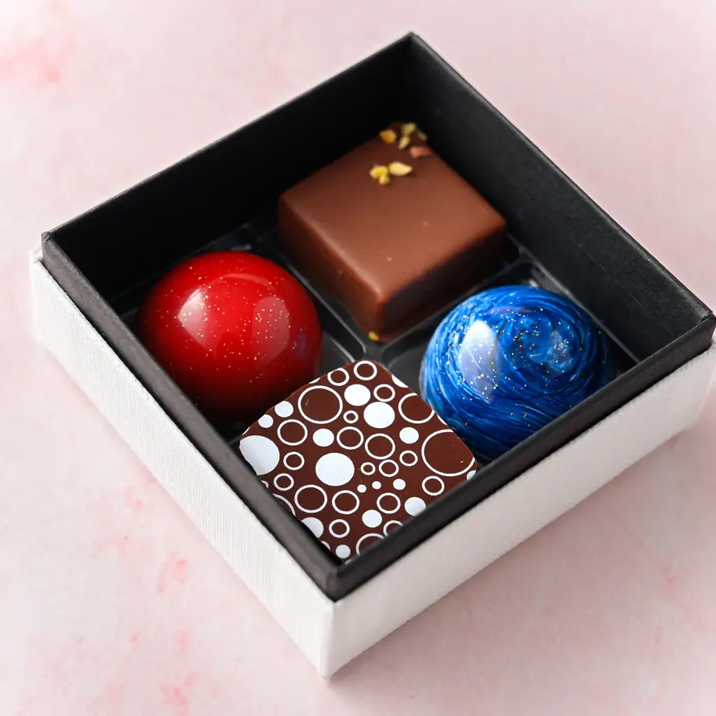 フレーバーは計4種で、それぞれ異なる嗜好やギフト用途に応じた味わいとコンセプトを持たせています。全てのショコラには香り付け程度のアルコールが使用されています(アルコール表記あり)。以下に各フレーバーの具体的な説明と、アソートメントの価格を示します。