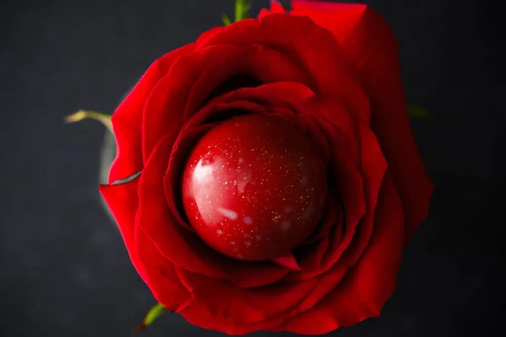 味わいは、甘酸っぱい苺のガナッシュと柚子のキャラメルを合わせた繊細なハーモニーが特長です。外見の力強さとは対照的に、口の中でなめらかに溶け合うフルーティーな余韻が長く続きます。用途としては、告白や特別なギフトだけでなく、自分へのちょっとした贈り物にも想定されています。アルコール:香り付け程度使用。