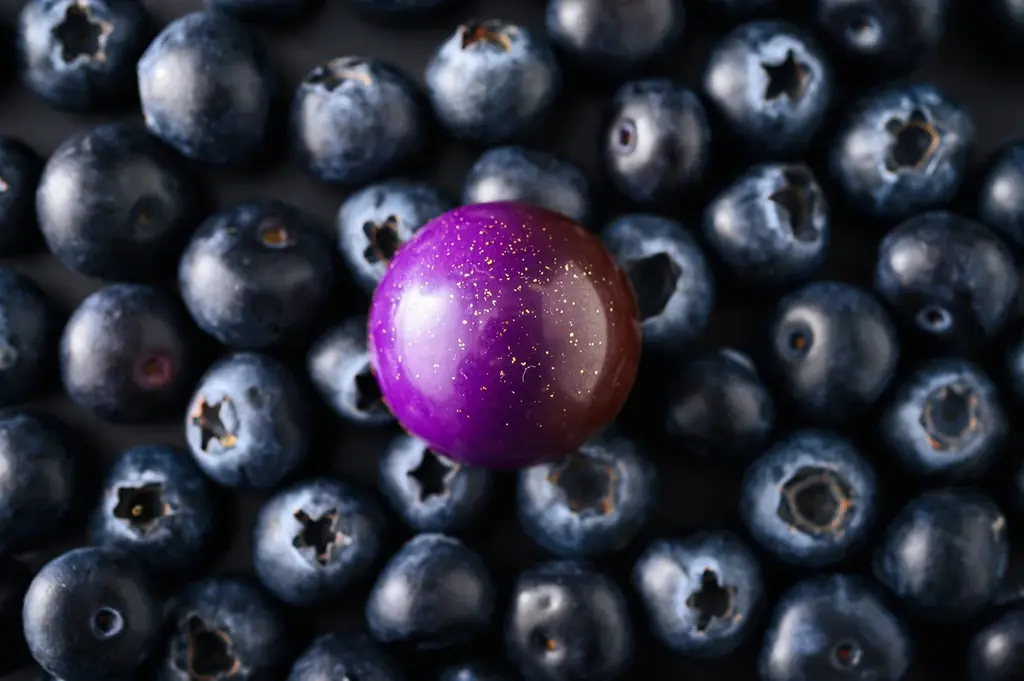 アサイーブルーベリー:スーパーフードとして知られるアサイーとブルーベリーを主役にした一粒。ほんのり甘酸っぱく凛とした爽やかな余韻があり、健康志向や美容志向の高い受け手に向く味わいです。こちらは24個入りアソートメントに含まれる旨の指定があります。アルコール:香り付け程度使用。