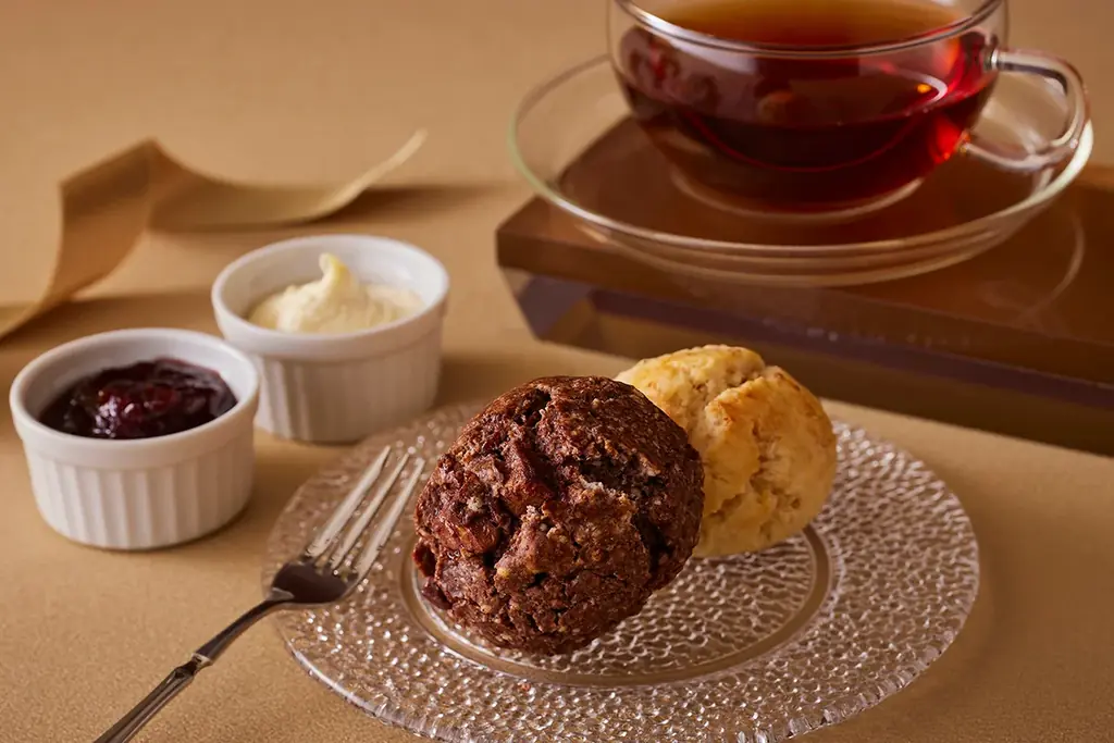 スコーンはプレーンとチョコレート風味の2種が提供され、ディルマ「ティーメーカー・シリーズ」のティービュッフェと合わせて楽しめる構成です。