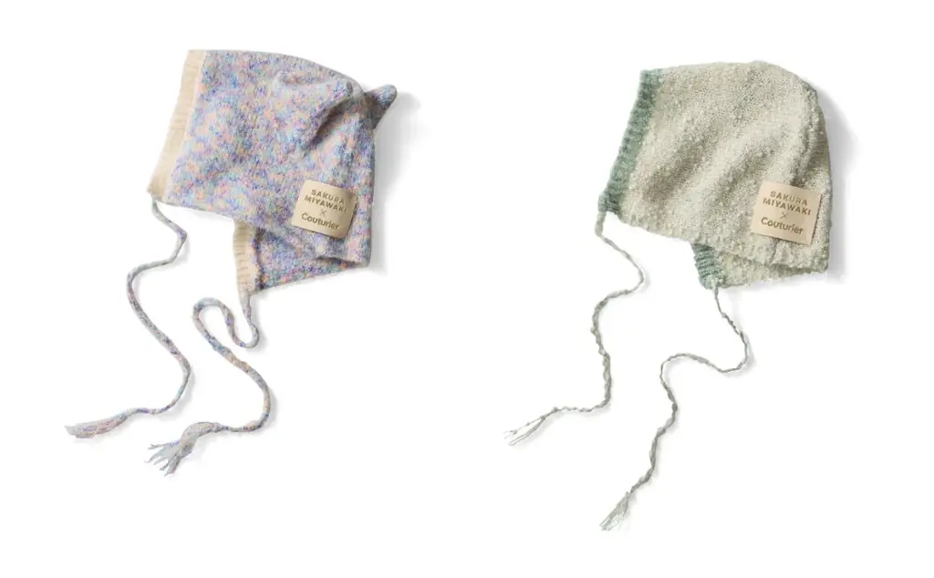 コラボでは実際にすぐ着用できる完成品も用意されています。宮脇さんの感性による色使いや毛糸の質感にこだわったニットキャップとニットビスチェです。どちらも手づくりの風合いを生かした仕様で、日常のコーディネートに取り入れやすいデザインになっています。
