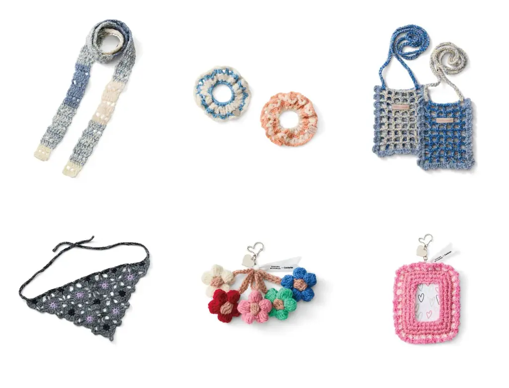 - 主な完成アイテム:ロングマフラー、フリルシュシュ、サコッシュ、フォトカードケース、フラワーモチーフチャーム、バブーシュカ