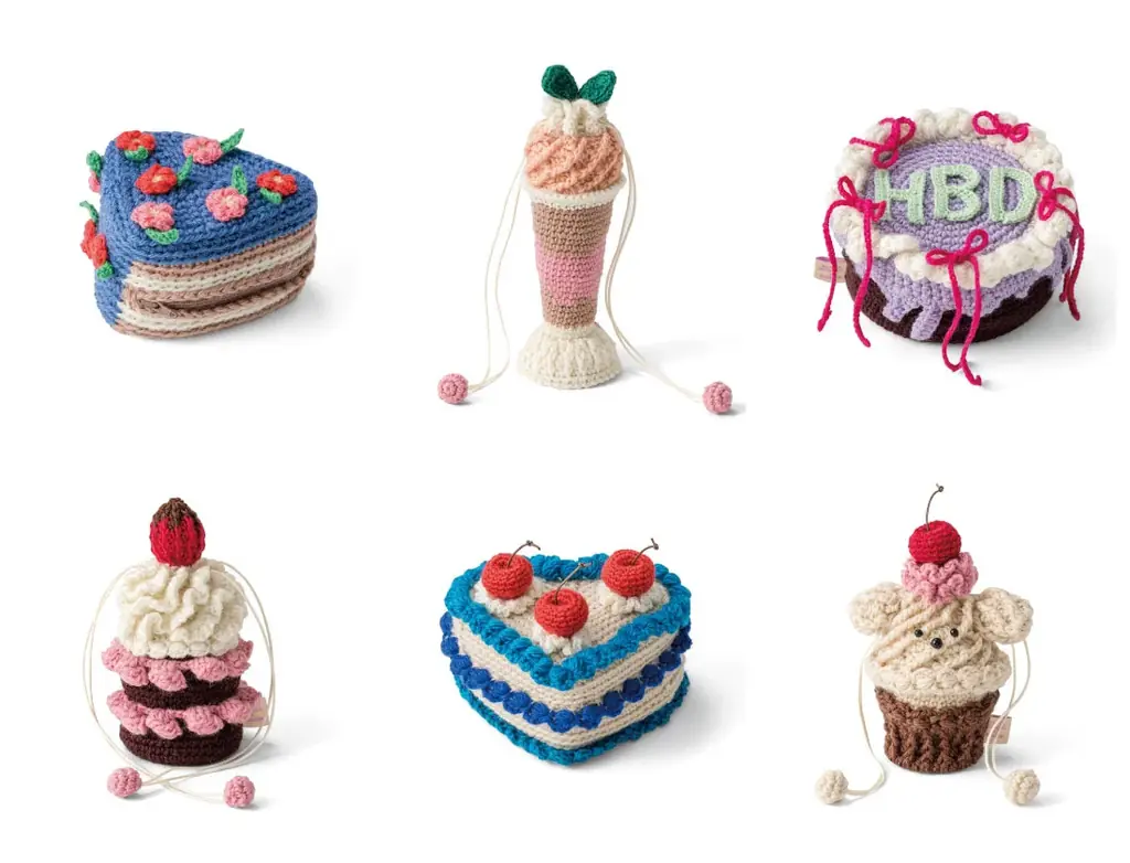 韓国カフェ風のカラフルでポップなスイーツをモチーフにしたかぎ針編みキットです。センイルケーキや犬のカップケーキなど、全6種類のポーチやきんちゃくが作れます。見た目の映えと実用性を両立した小ぶりサイズで、初心者でも編みやすい工夫が施されています。