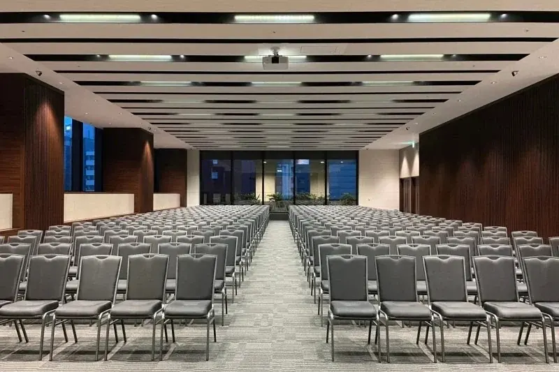 本施設は高性能な音響・照明設備や大型スクリーンを備え、式典やパーティーだけでなく、株主総会・カンファレンス・記者発表会・各種セミナー・研修など多様なビジネスイベントに対応可能です。演出面での要求が高いイベントでも細かい調整ができる設備構成とされています。