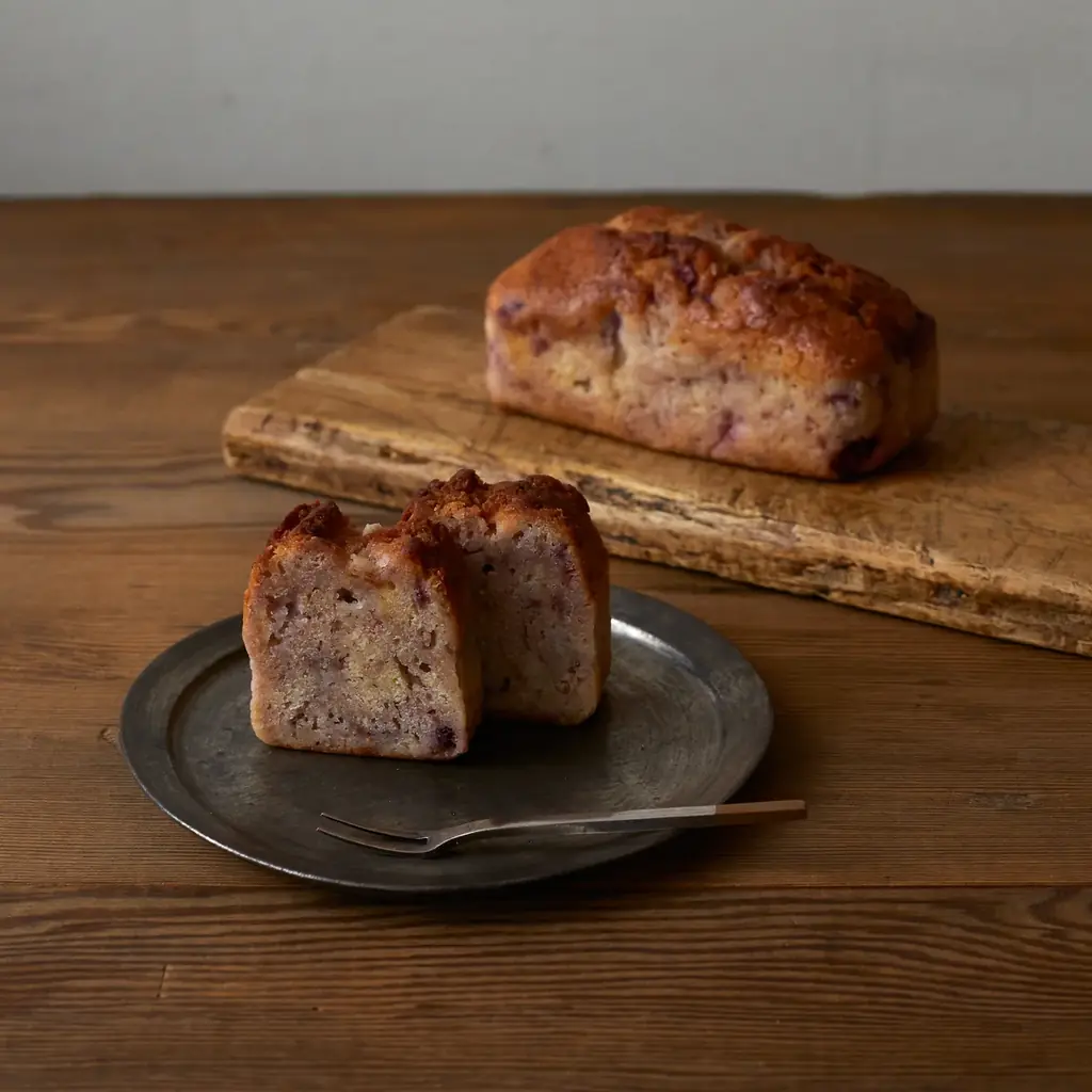 | 発酵バターのパウンドケーキ(フランボワーズ)/1本 | 1,740円 | ホールのフランボワーズを閉じ込めた、甘酸っぱくすっきりした後味。 |