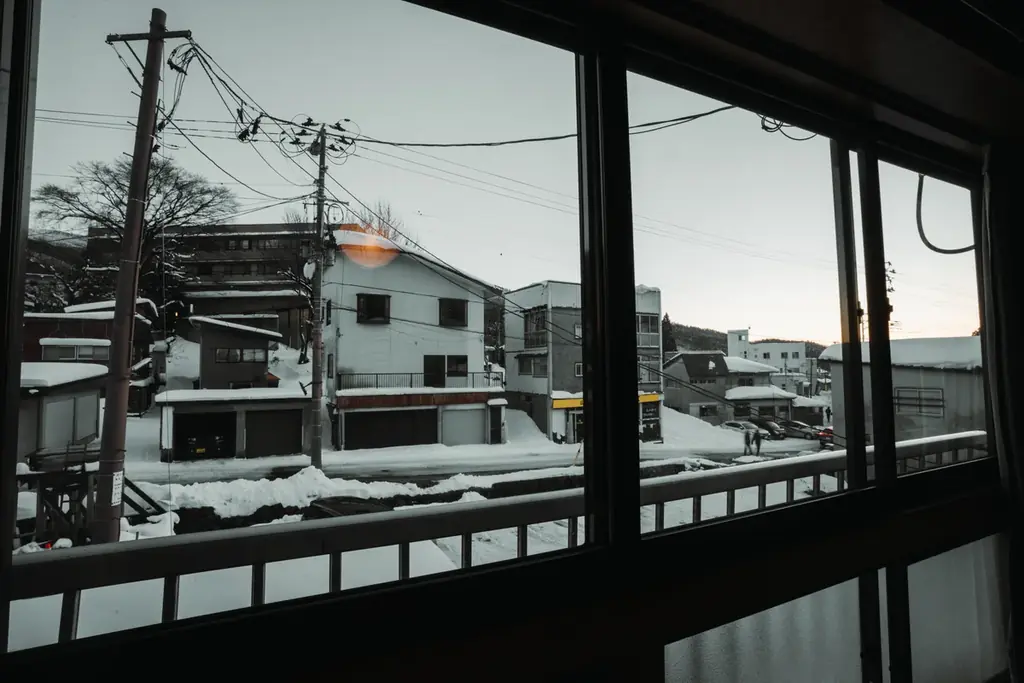 客室は歴史を感じさせる温かみのある設えを継承しており、3人部屋や1人部屋などの構成が示されています。冬の早朝に見られる澄んだ空気や静寂といった温泉街の風景を体験しやすい仕様となっています。