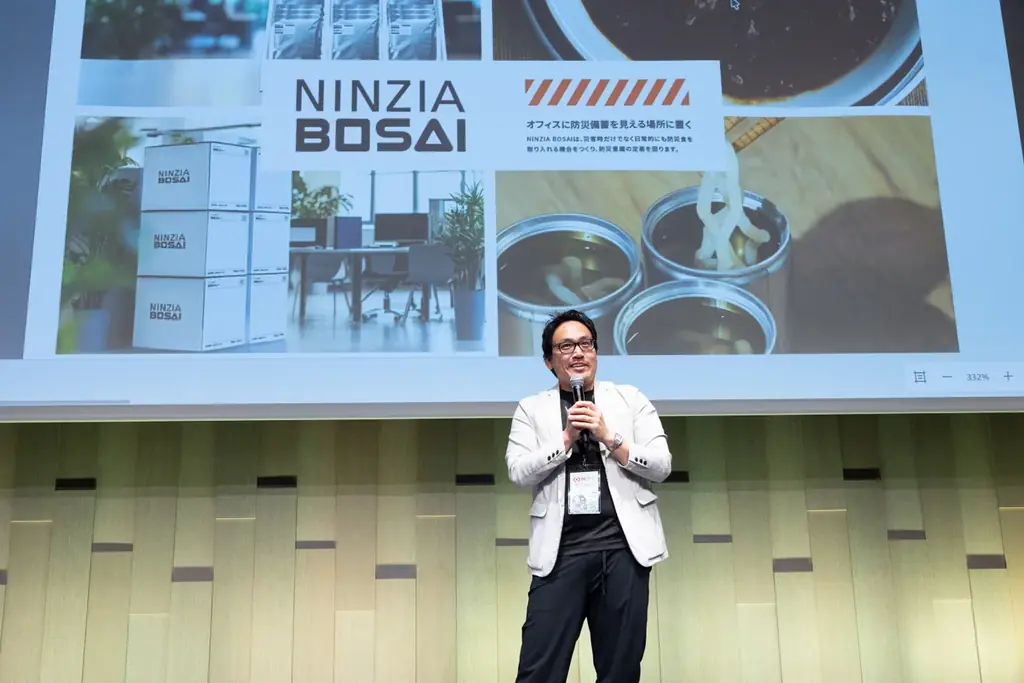 NINZIAは糖や脂質に頼らない食感創成技術をもとに、健康課題と食べる楽しみの両立を目指すフードテック企業です。防災分野に対しては「NINZIA BOSAI」ブランドを打ち出し、見せる備蓄、植物性の提案、そして日常利用を前提にした商品設計を行っています。
