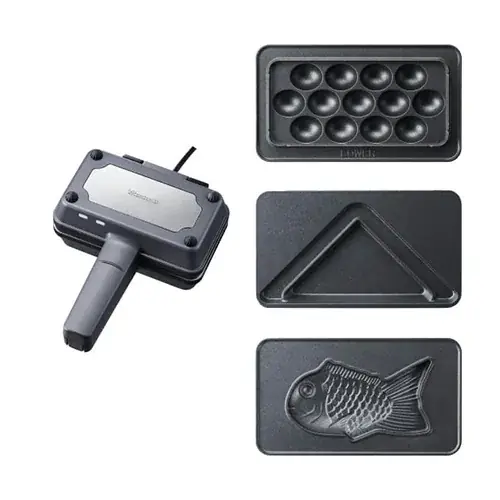 - 価格:11,000円。香港発のエッグワッフル(サクッ、モチッとした食感)を作れるほか、1人用の三角ハーフホットサンド、たい焼きプレートであんこたっぷりのたい焼きも作れる多機能プレートセットです。