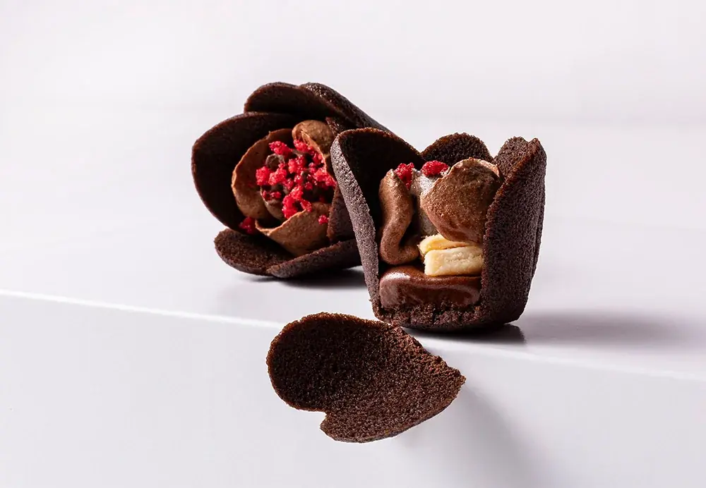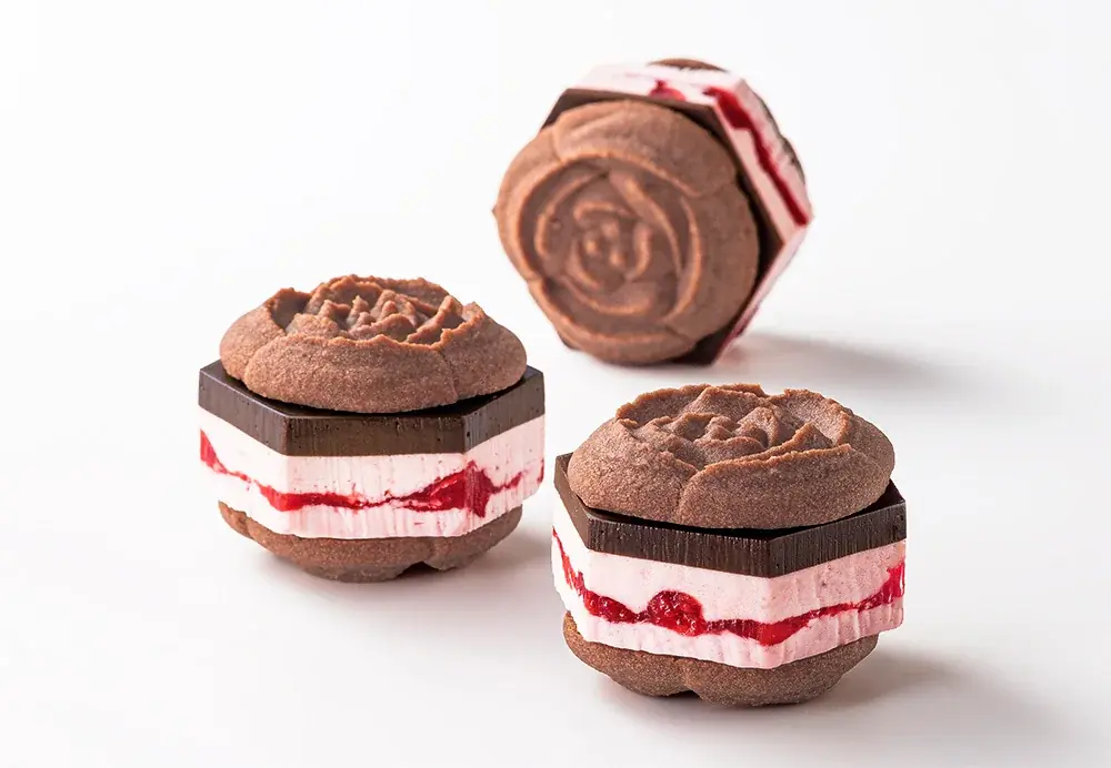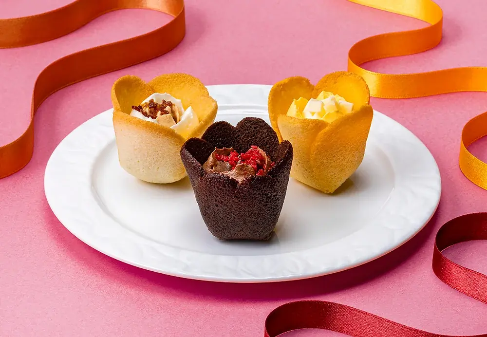 - エクアドル産カカオを使用し、すっきりとしたキレ、ミルキーなコク、濃密な味わいの3種を一口で楽しめる生食感のショコラバタークリームをラングドシャクッキーで包んだ商品。ラングドシャはチューリップの花びらのように軽やかに焼き上げ、ハート型の花びらが入る特別バージョンも用意。