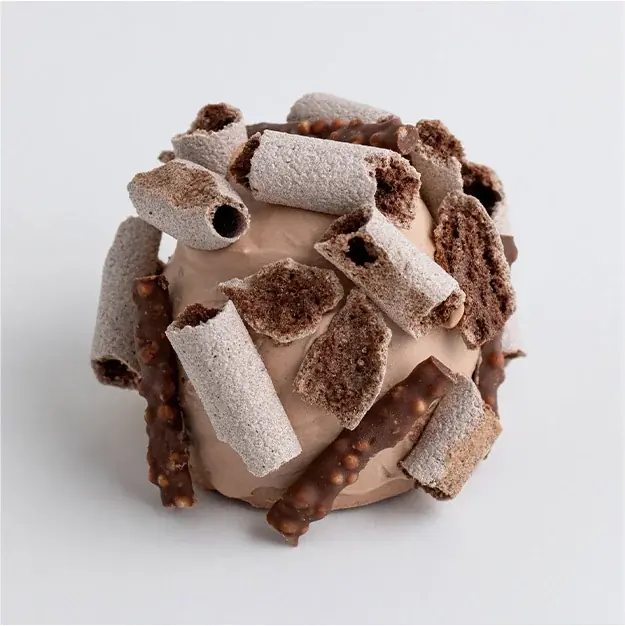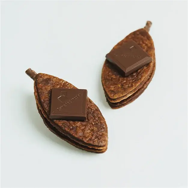 - 商品説明:北海道産小麦《きたほなみ》《春よ恋》などを使用した手織りパイに「小枝」とパッションフルーツ香るガナッシュをサンド。形はカカオポットをイメージしています。