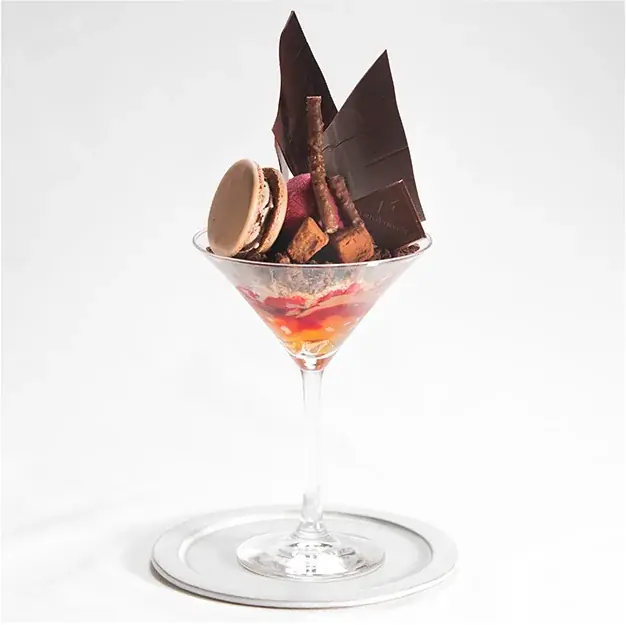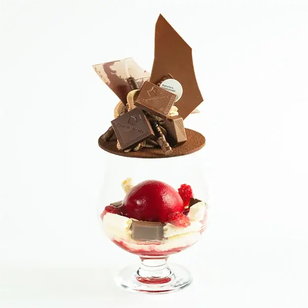 - 商品説明:濃厚なショコラとカカオクランブル、赤い果実のソルベを重ねた大人のパフェ。力強さと繊細さが共鳴する、地球“ガイア”を思わせる味わいです。