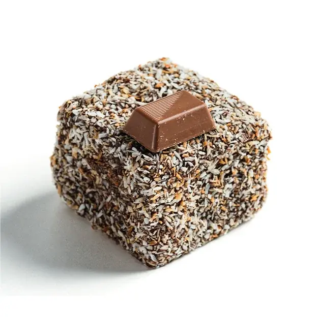 - ラミントン説明:大阪関西万博でも人気だったオーストラリア伝統菓子ラミントンを、森永商事のココアと森永製菓の「ダース」を使用したバレンタイン限定バージョンにアレンジ。ふわふわしっとりの生地にカカオのほろ苦さを加えた一品です。