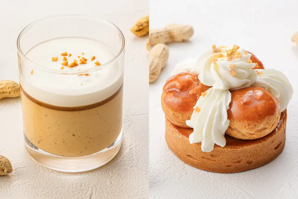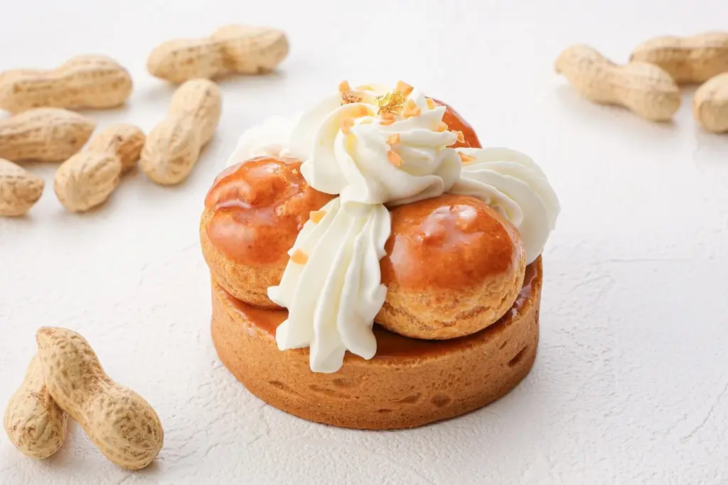 - 構成要素:タルト生地、ピーナッツクリーム、プチシューの組み合わせ