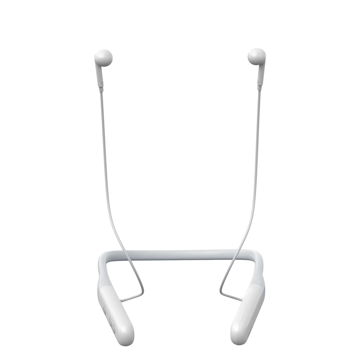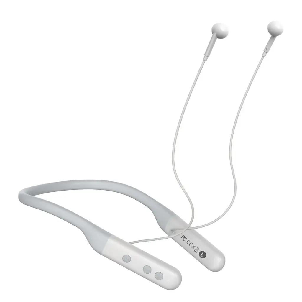 本体は首かけタイプであり、イヤホンを耳に差し込む構造ではありません。首にかけた状態で歩行しても落下の心配が少なく、使わないときは首にかけたまま保持しておけます。イヤホンは耳のくぼみに軽く当てる装着方法で、長時間利用しても痛くなりにくく、蒸れにくい点が特徴です。