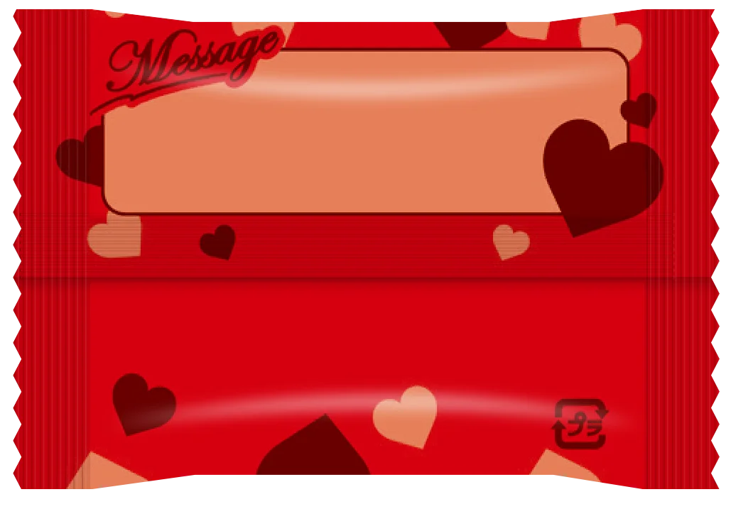 パッケージはハートやリボンをあしらった煌びやかなデザインで、ギフト用途を意識した外観になっています。個包装にはメッセージが書き込める仕様が採用されており、手軽に気持ちを添えられる点が特徴です。