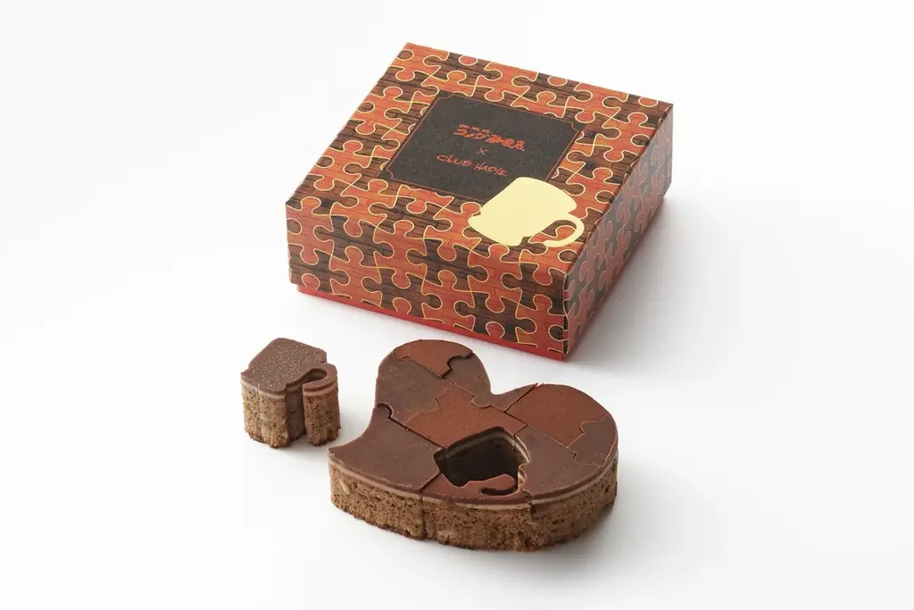 ブラウニーはパズルのピース状に切り分けられており、切り分けた中にコーヒーカップのモチーフが施されています。シェフのこだわりでコーヒーの香りと深みを活かす配合が特徴です。