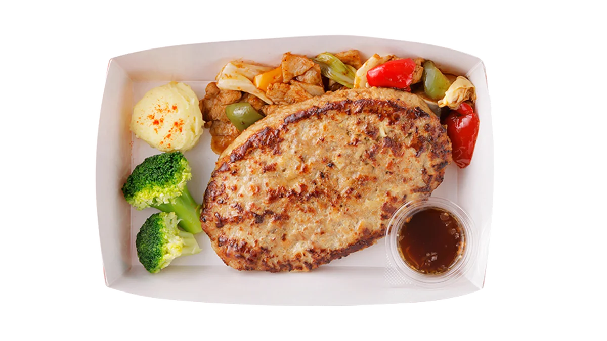 今年は特に味噌感が増しており、従来よりもコクが強くなった点が訴求ポイントです。ハンバーグとの組み合わせにより、ごはんが進む味わいを目指しています。写真のハンバーグはSサイズで掲載されています。