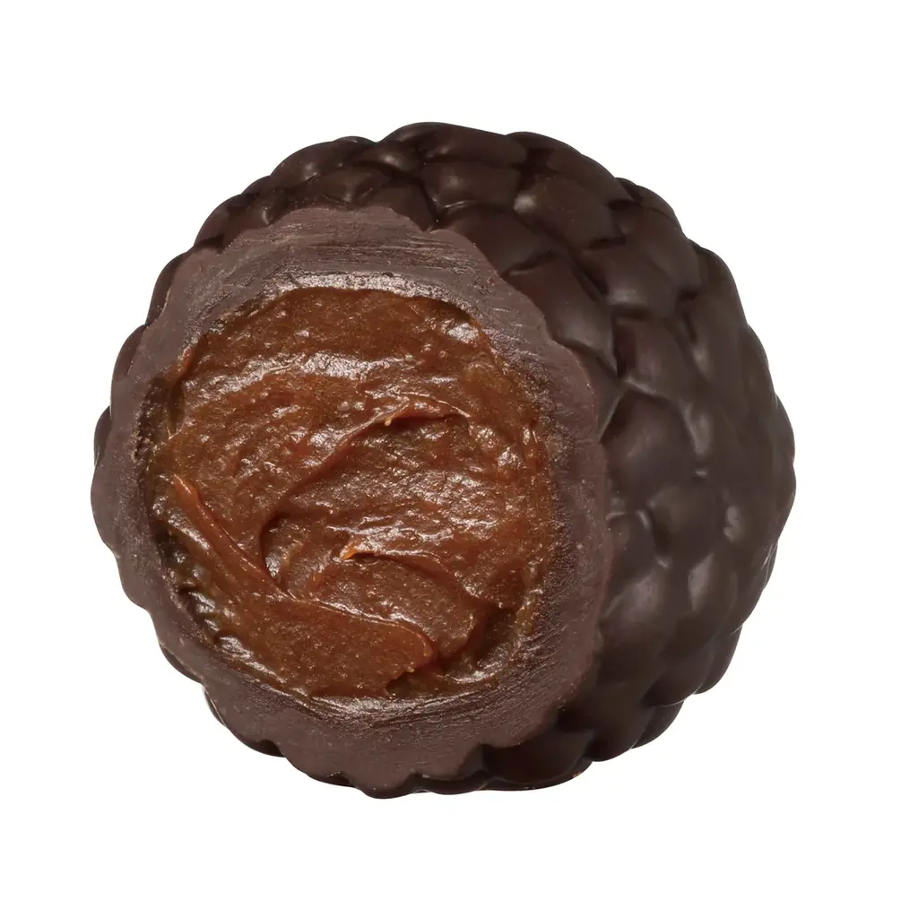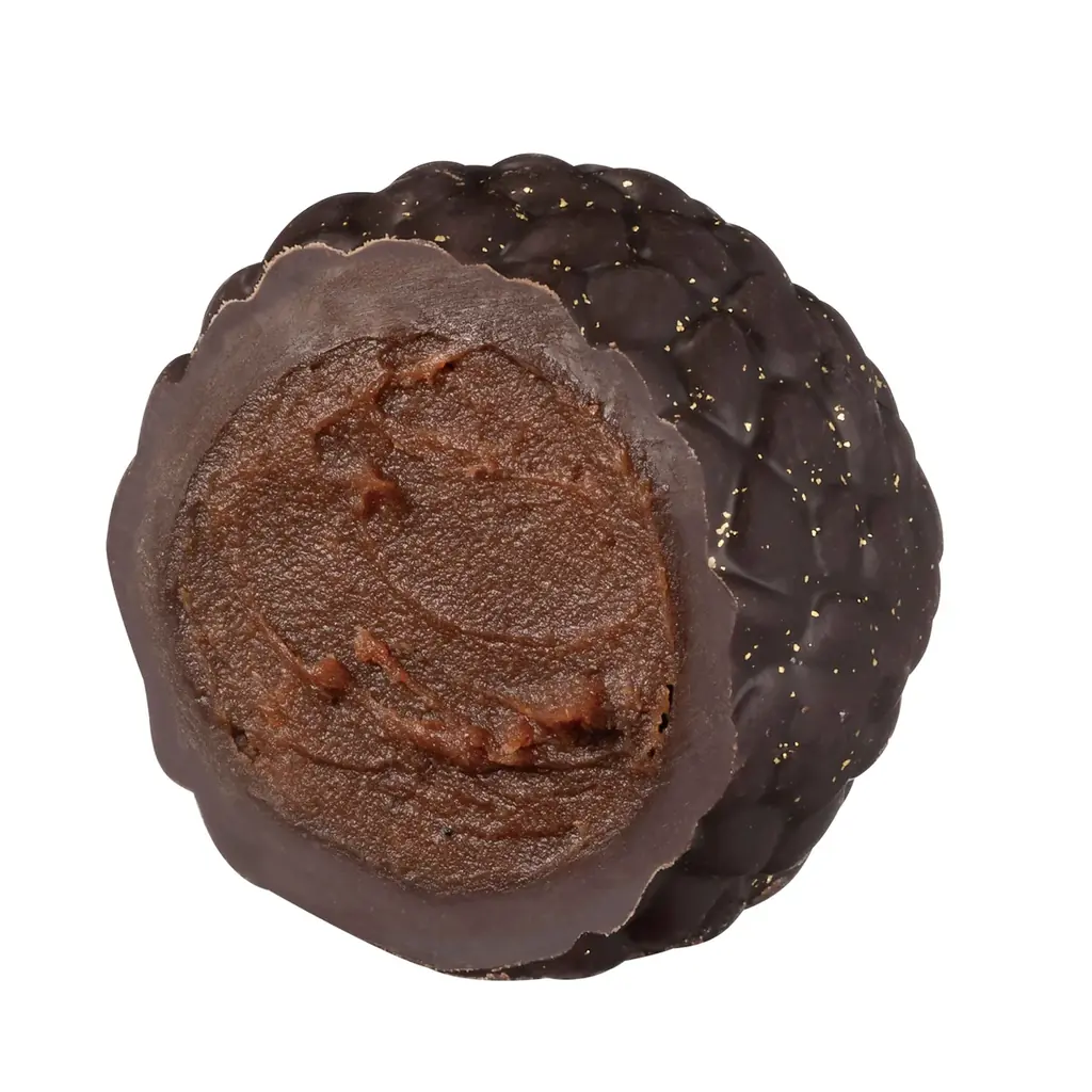 エマニュエル・リオンが手掛けた「トリュフ オ セザム」は、奥深いコクを持つダークチョコレートに、香ばしいゴマの香りを組み合わせた一粒です。和の素材を取り入れた表現が特徴で、焙煎の深みと素材の純粋さが共鳴します。