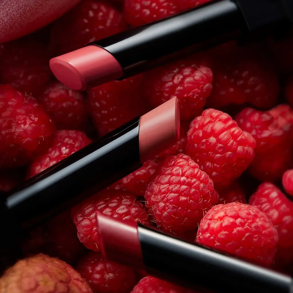 - ライチを皮ごと頬張ることで口元がピンク色に染まる、そんな不思議なライチを想起させるロゼピンク系のカラー。口元に自然な色づきを与える設計です。
