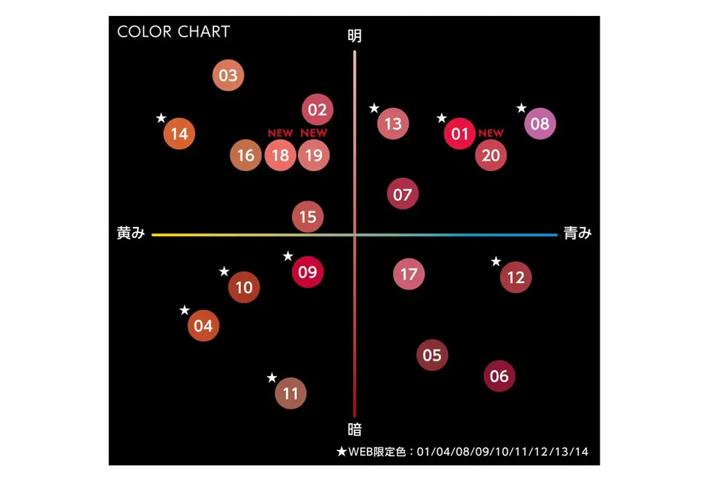 | ライン合計 | 全20色(うちWEB限定9色) |